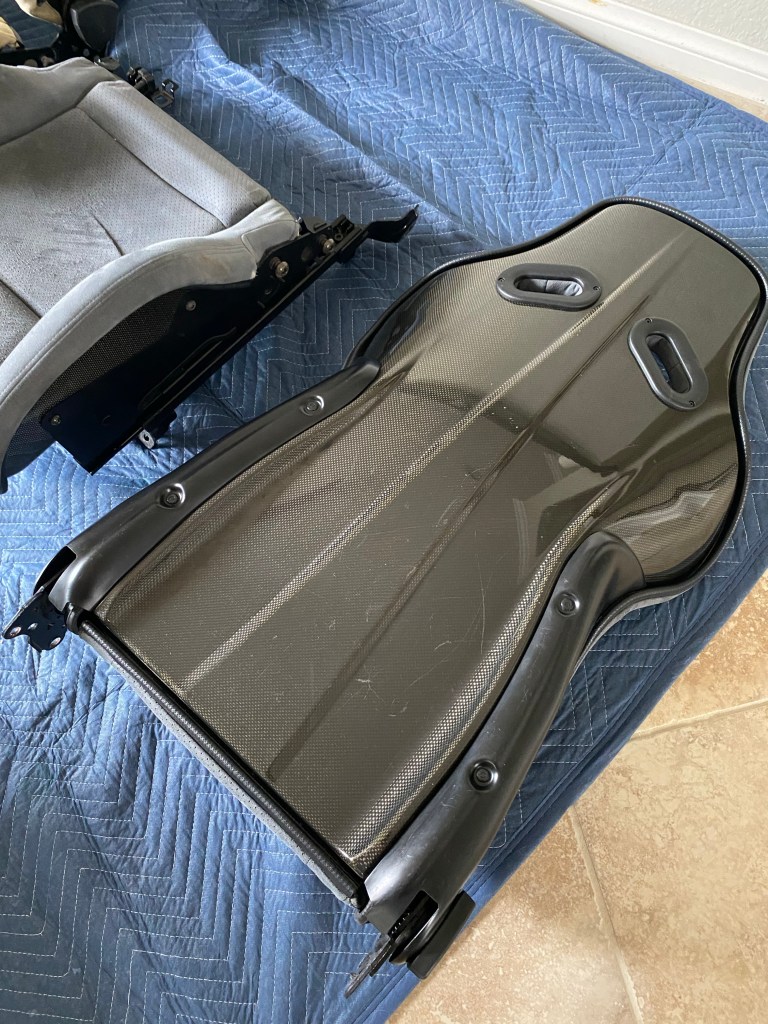 On the left is the Recaro SPX CL100 that was used on the EVO X design prototype. On the right is the S203 CF bucket seat. These are carbon fiber backed reclinable bucket seats!!