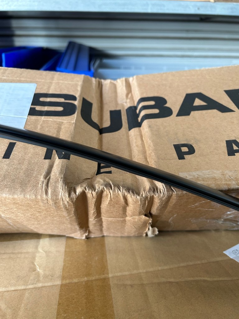 The only issue is these parts are shipped very poorly from Subaru. The box came shipped with just the trim and no protective bubblewrap or paper. Guess what happened… Yes, it got kinked right where the box was damaged.