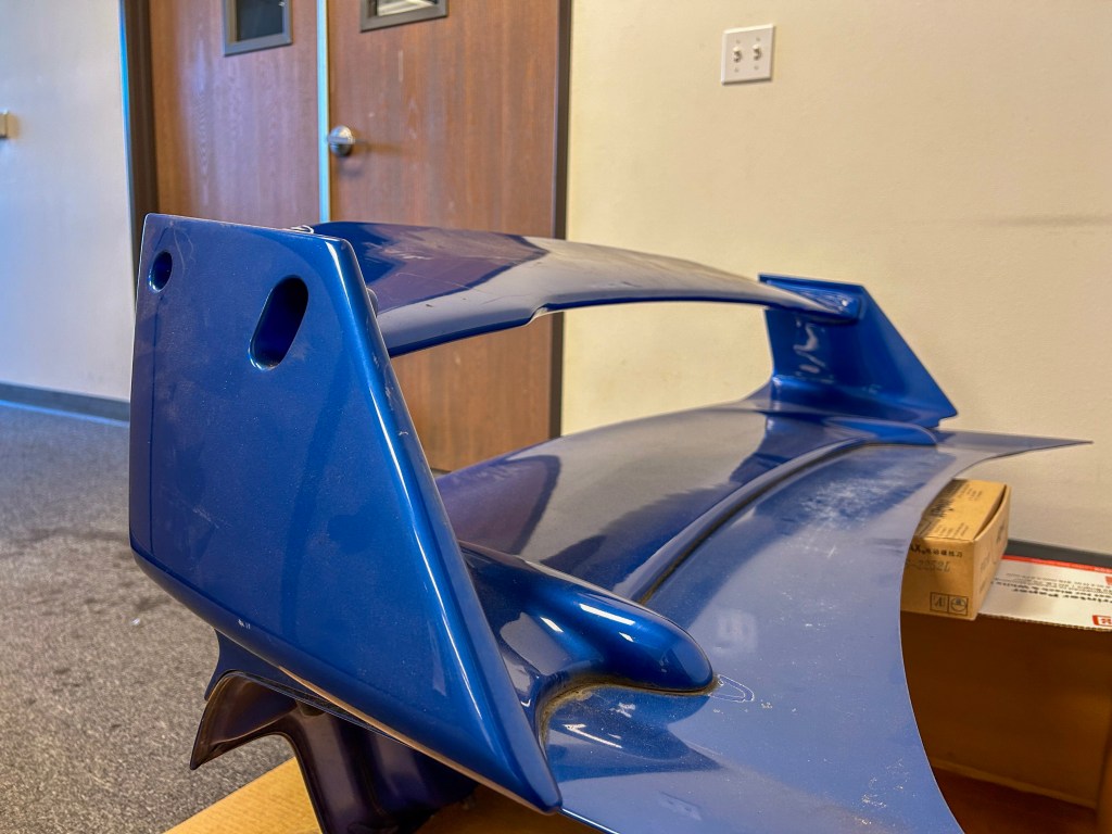 On this quest of mine to collect all the rarest GD parts (factory and aftermarket), the SYMS RACING spoiler was high on the list of parts to get. This has been a part that I’ve been chasing for quite a few years now and I am proud to say that an authentic SYMS RACING spoiler was recently acquired a few weeks ago!